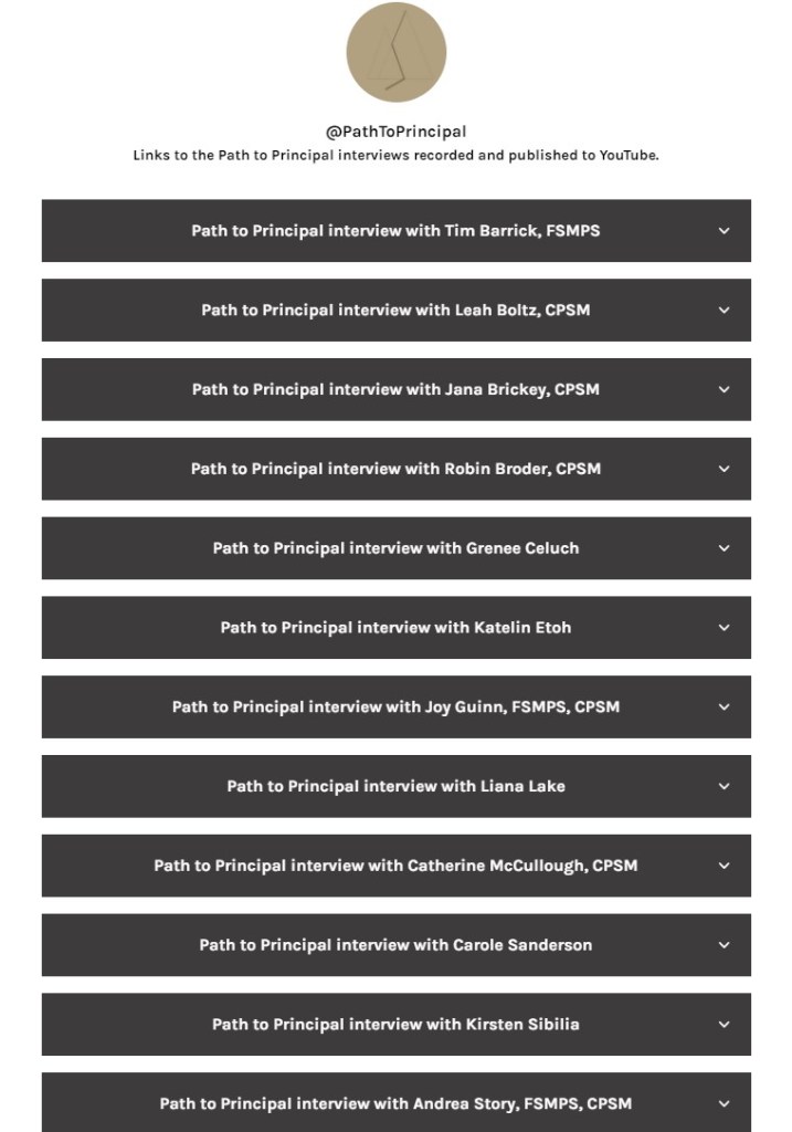 To view the full Path to Principal interviews recorded and published on YouTube, follow this linktree.